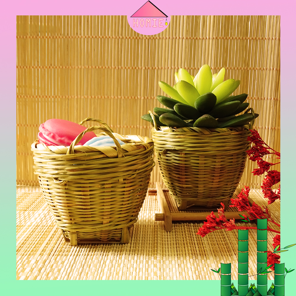 Khi nhắc đến cần xé, chắc hẳn bạn luôn nghĩ đến những chiếc giỏ thật to, đựng hàng trăm kg vật dụng và có thể chịu lực tốt, nhưng giờ đây, những chiếc cần xé đã dần được hóa nhỏ nhằm đáp ứng nhu cầu về trang trí cũng như đựng vật dụng nhỏ. Với kích thước 7x7cm, và 14x12cm, cần xé mini có thể giúp bạn chứa đựng những thứ lặt vặt như tiền lẻ, chìa khóa, kẹp văn phòng,... Bên cạnh đó, những chiếc cần xé mini hoàn toàn có thể thay thế những chậu hoa sứ đắt tiền trong việc trồng trọt. Bạn hoàn toàn có thể sử dụng cần xé mini để trồng hoa, sen đá, hay xương rồng. Với khả năng thoát nước thông qua những nét đan từ tre, đây có thể là lựa chọn tối ưu cho cây trồng của bạn cũng như góp phần bảo vệ môi trường.