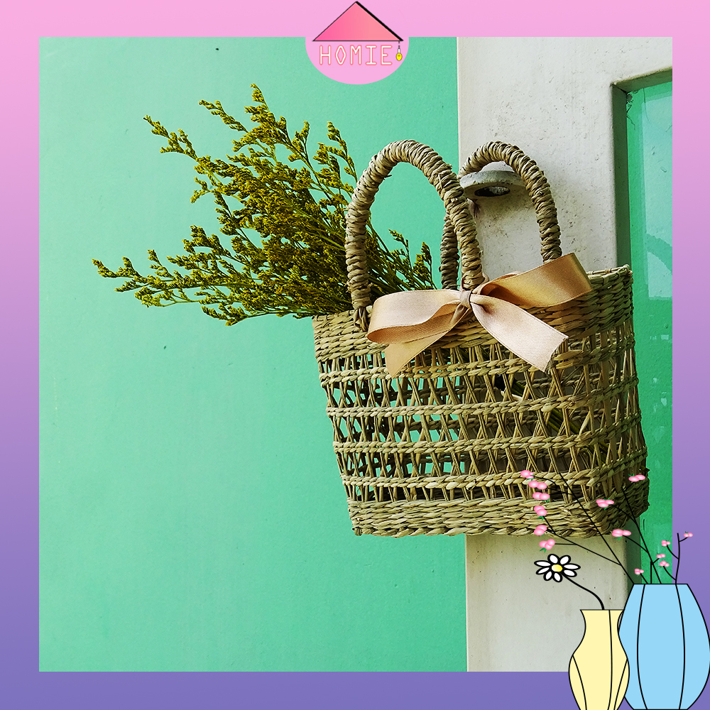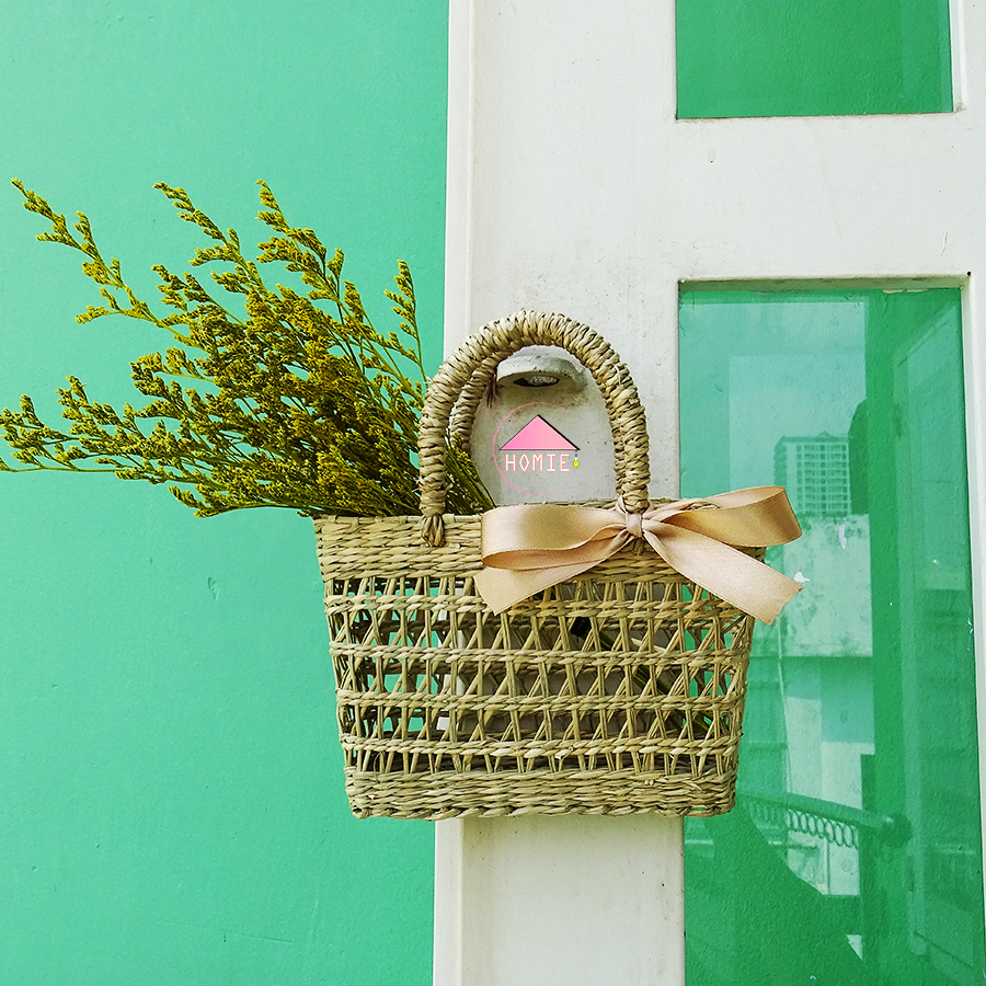 Giỏ cói vuông dùng làm phụ kiện chụp ảnh, cắm hoa, trang trí nhà cửa đa năng