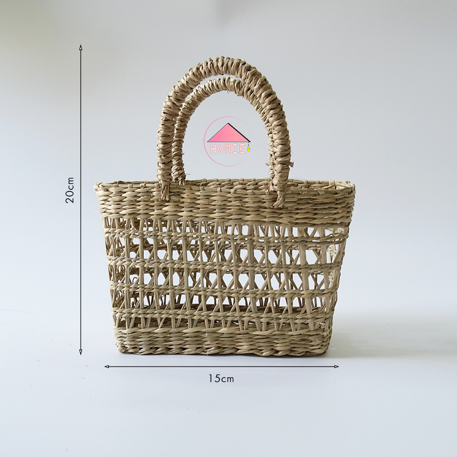Giỏ cói quai xách dáng vuông phong cách hiện đại trang trí xinh xắn
